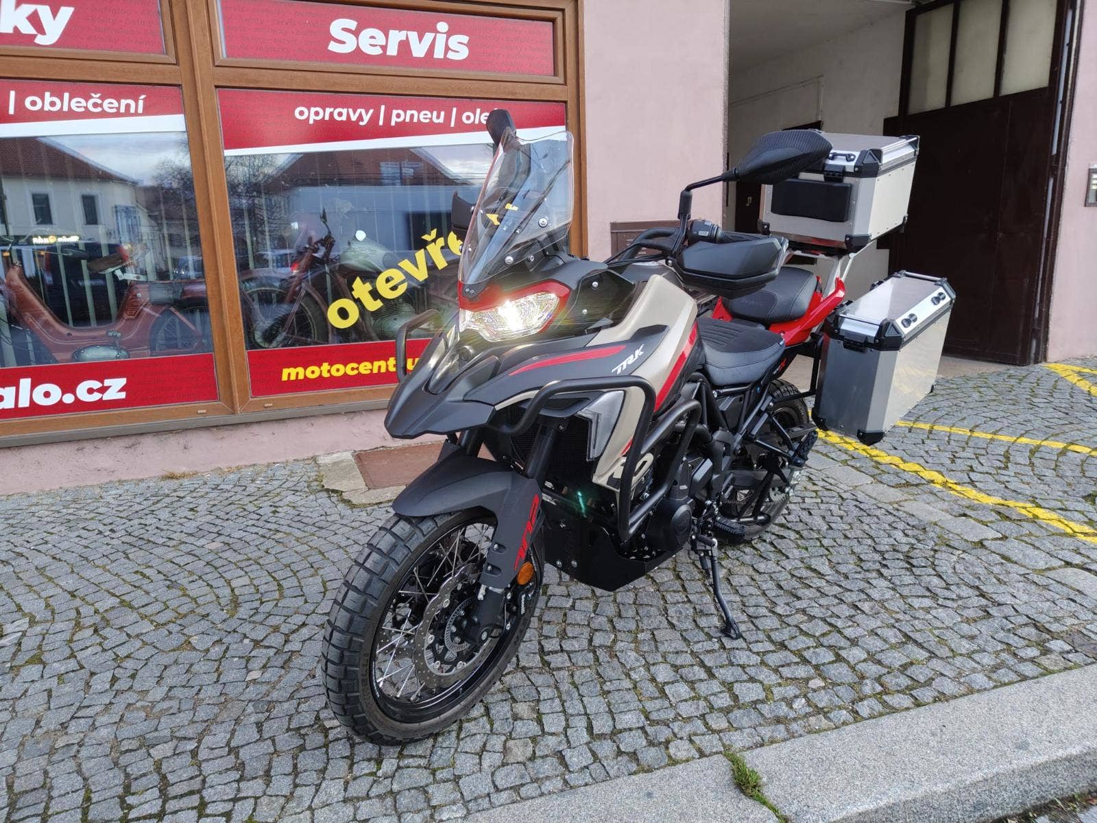 Na prodej Benelli TRK 702X, r.v. 2025, najeto pouze 910 km, jedná se o zánovní moto v plné 4-leté záruce a v plné výbavě jako jsou hliníkové kufry, padáky, výhřev rukojetí kryt motoru, nižší sedlo atd. Nyní po servisní kontrole. Možný odpočet DPH Možnost protiučtu, výměny, financování.